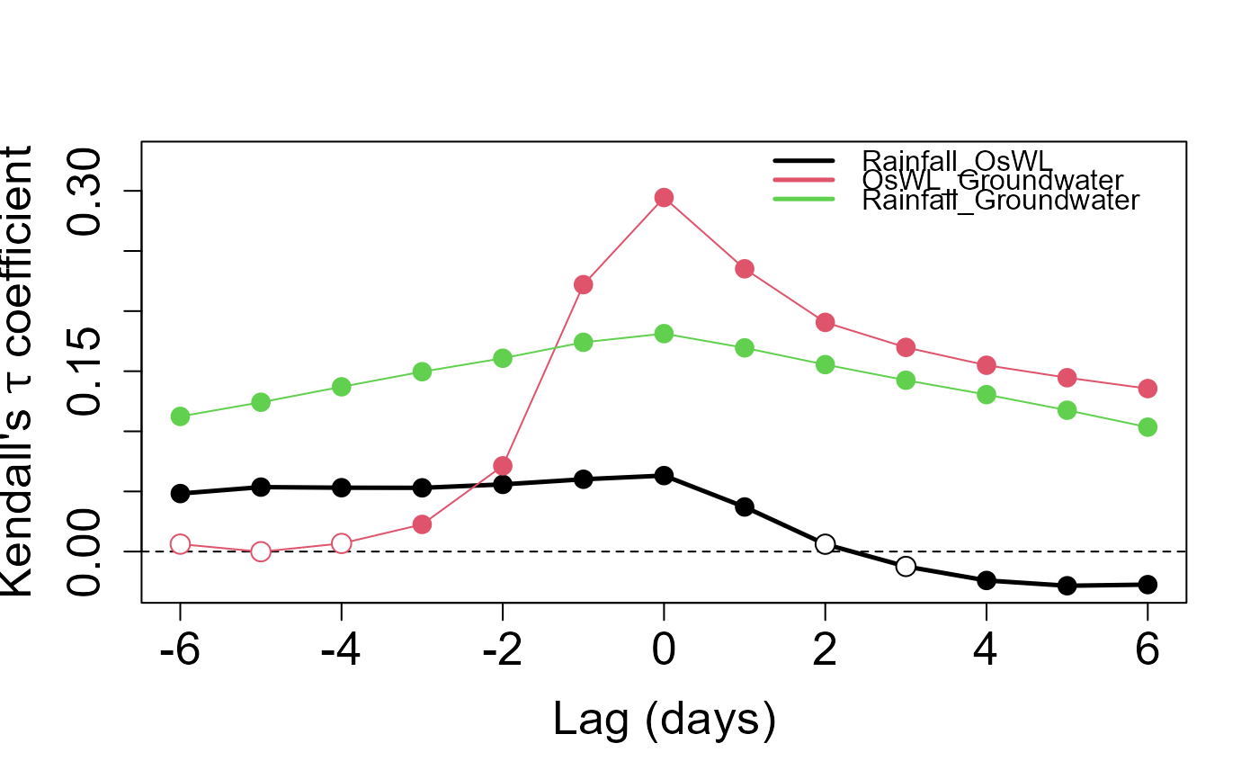 Kendall_Lag(Data, Lags = seq(-6, 6, 1), PLOT = TRUE, GAP = 0.1)